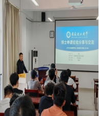 21级研究生常层、陈欣欣、陈赋章、李小飞分别考取中国人民解放军国防科技大学、同济大学、华南理工大学和山西大学,这4名学生党员分别用幽默风趣的语言结合着自身经历分享了其考博历程和心得体会,其中包括对院校选择、学习计划、考试准备、面试技巧等各方面的经验以及独特见解,使在场的各位同学能够提前“亲身”感受一次考博的全部流程,激发了大家的学习热情。