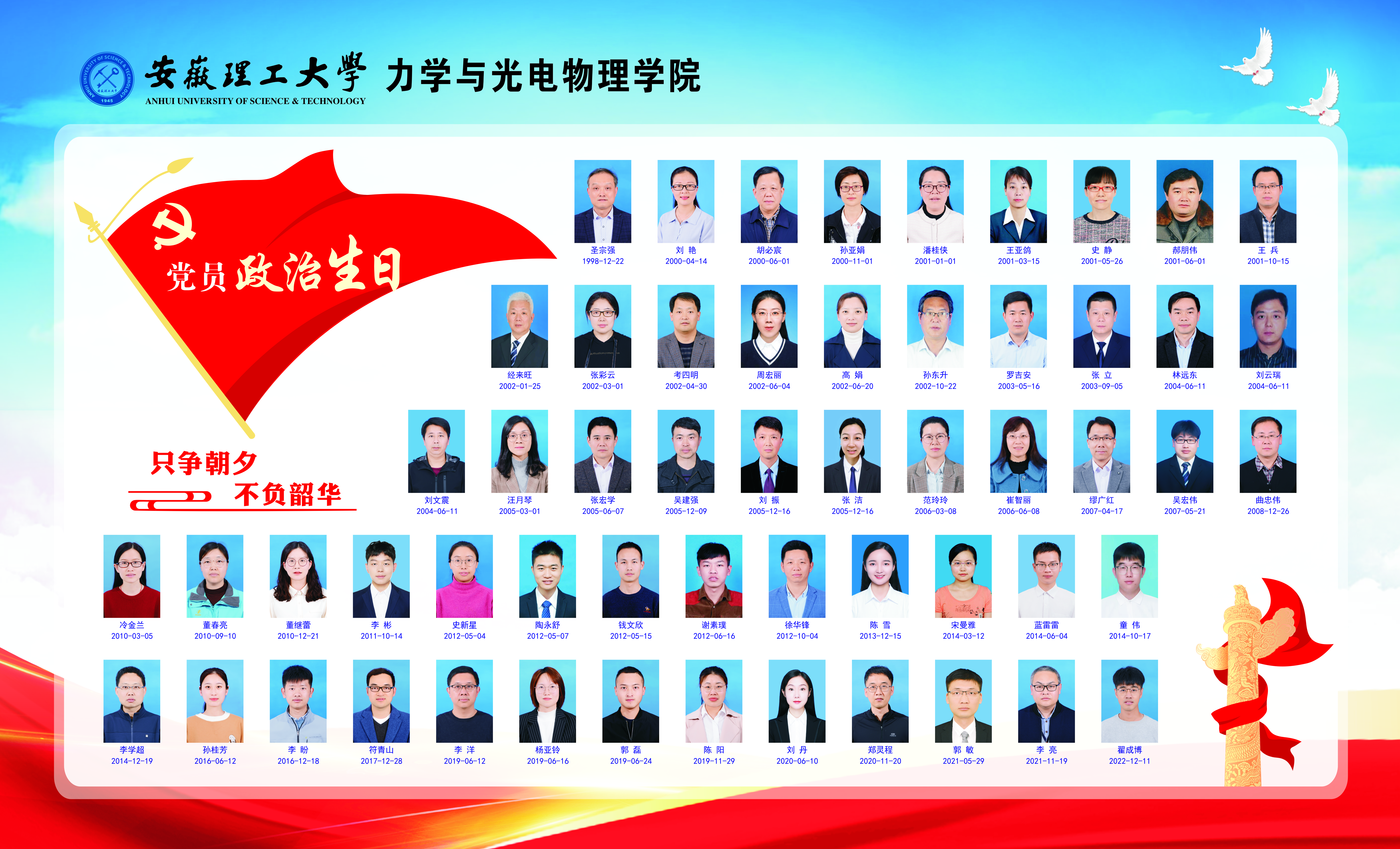 基础力学系教工党支部书记、系主任崔智丽是一名光荣的军嫂。她说:“战争年代,革命先烈为了党的事业抛头颅洒热血。今天,我们只有时刻牢记肩上的责任,全力以赴,才无愧于党员称号。党员政治生日墙,对党员是一种激励,更是鞭策。”