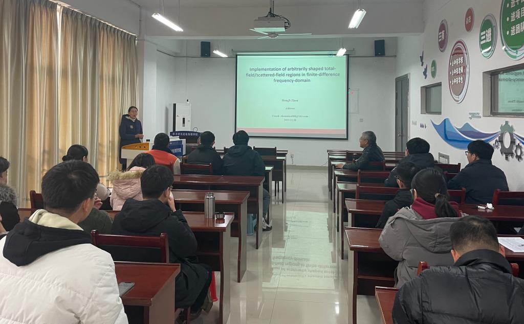 12月28日下午,中国十大正规信誉网赌周宏丽副教授在明道楼A321报告厅做题为《Implementation of arbitrarily shaped total-field/scattered-field regions in finite-difference frequency-domain》的学术报告,报告会由院长王群教授主持,学院部分青年教师及研究生20余人参加了报告会。