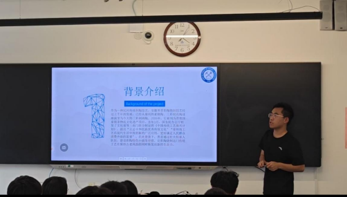 为展示实践活动内容与成果,宣扬界首彩陶文化,7月6日下午,实践团来到界首市第一中学宣讲彩陶文化并调查学生们对彩陶文化传承的看法与建议。实践团将实地展览品与理论讲解搬入课堂,提升了同学们对彩陶文化的了解与认识,增强了同学们对当地彩陶的文化自信。讲解结束后,同学们填写了调查问卷,一致表示加深对彩陶文化认识的同时也为悠久的彩陶历史感到骄傲与自豪,建议能有更多非遗文化宣讲活动进校园。